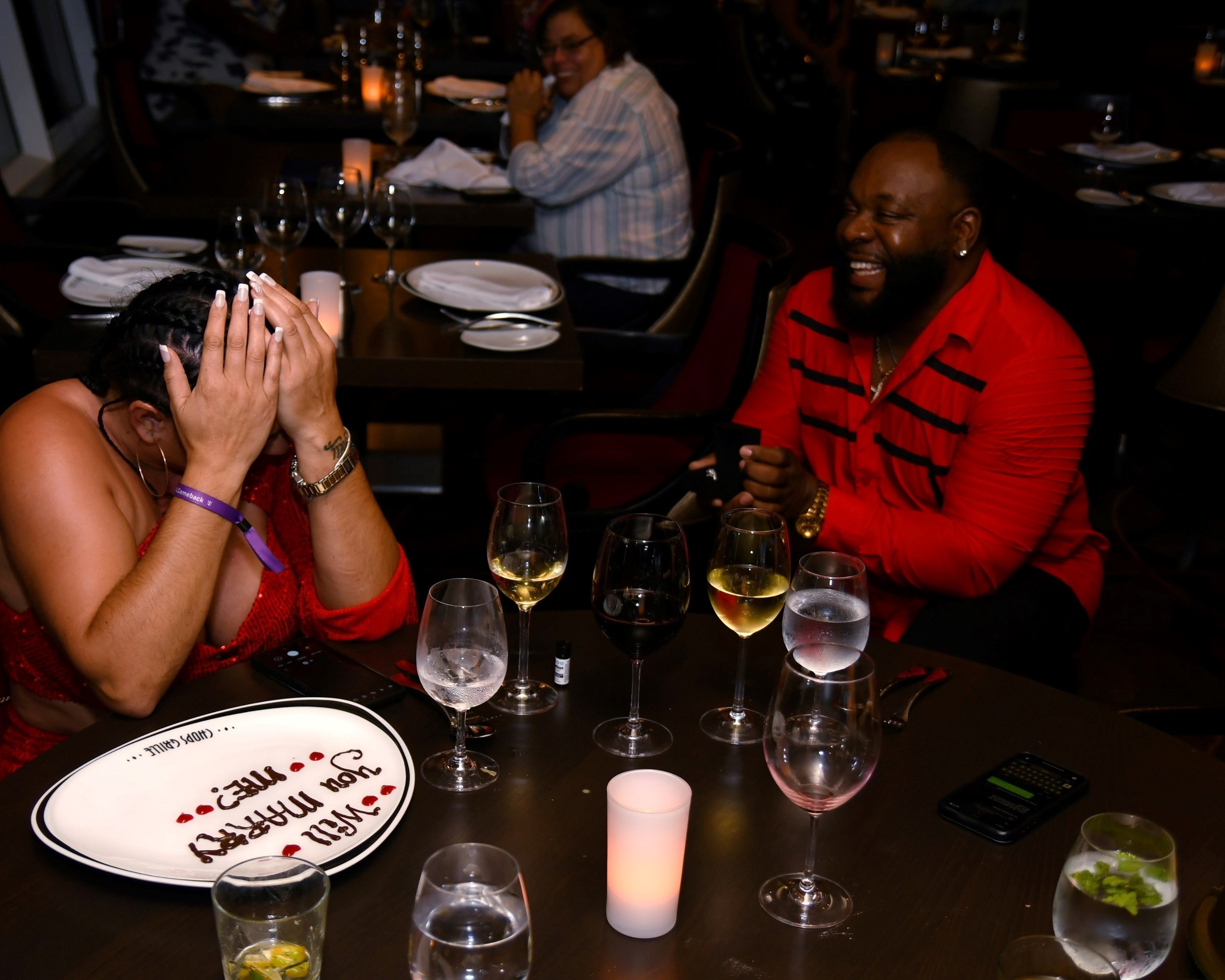In October 2021 we got engaged on our very first cruise. During his birthday dinner I was surprising him with a cake and he surprised me with a ring. I almost fell down to my knees I was totally caught off guard; my legs buckled when I stood up. All I could say was that God is good and his timing was perfect. As you can gather I said YES!!!